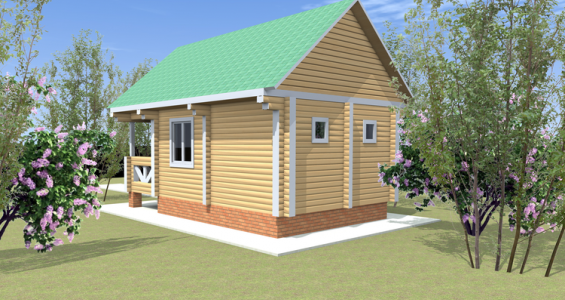 Баня из профилированного бруса для небольшой компании из 2-3 человек. Данная баня станет отличным украшением вашего участка. При проектировании специально был оставлен проем для заполнения огнеупорным кирпичом. Печь в данном случае будет выполнять роль камина если использовать стеклянную крышку топки.