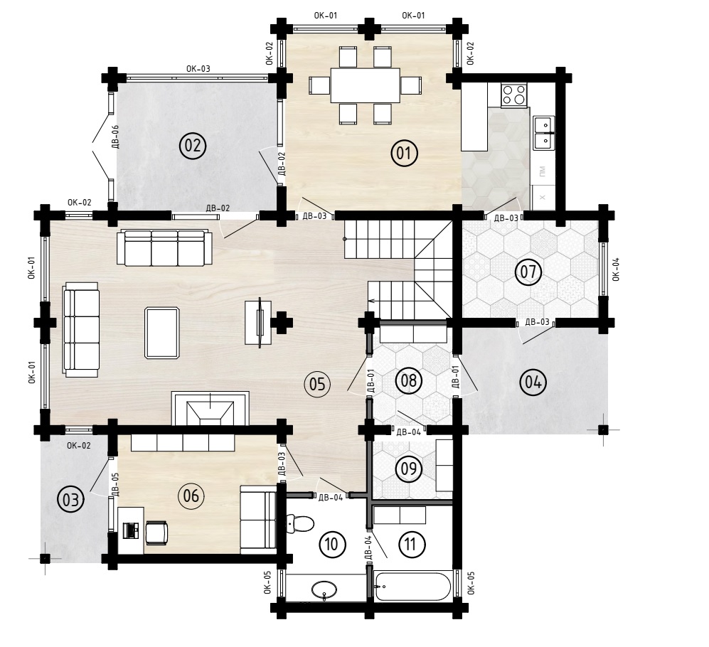 -стены из профилированного бруса камерной сушки, сосна;