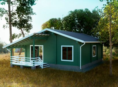 Одноэтажный дом из профилированного бруса, сочетающий классические элементы домостроения и современные тенденции. Особенно стоит отметить роскошную и просторную террасу этого экологичного и комфортного дома.