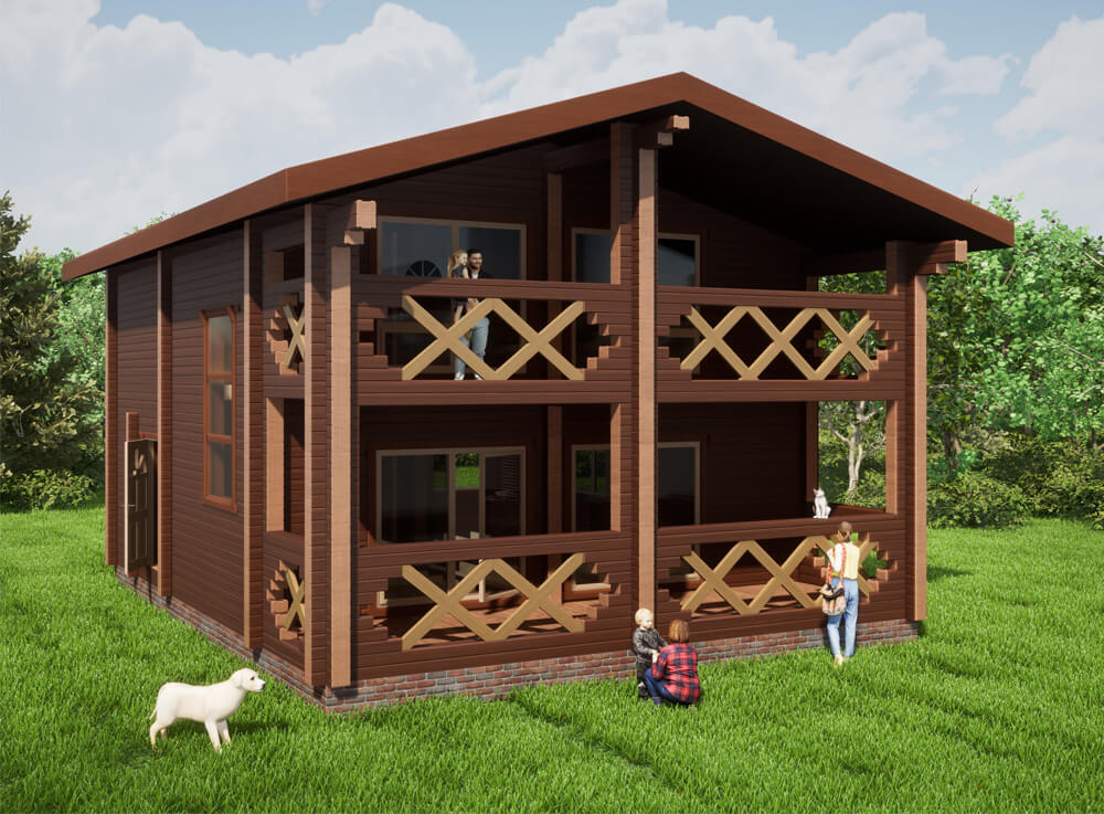 Добротный двухэтажный дом из профилированного бруса — отличное соотношение цены и качества. Архитектура дома впитала в себя настроения минимализма и современные тенденции. Большие окна дают много естественного света, а удобная планировка позволит с комфортом разместиться даже очень большой семье.