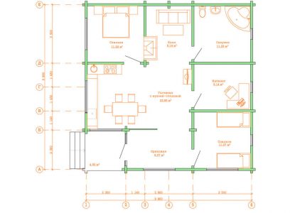 В составе помещений — 2 спальни и 1 кабинет, поэтому данный проект отлично подойдет для семьи из 2-3 человек.